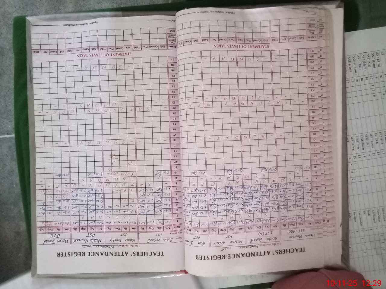 | Remarks (Use Separate Page if Required): Sir SST teacher Sadia Arshad not present in school today her leave was not approved she applied 0900 hrs today after school time when I reached after this Headmistress Fibrous Akhtar approved her leave at1058 hrs picture are available PST Teacher Kausar Basheer was not present in school she applied earnd leave apply 5 November 2025 her leave not approved from higher authorities but she is continue not coming in school picture are available Please check and instruct him strictly | |||||