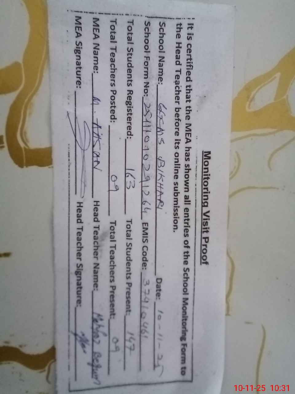 | EMIS Code: 37410461 | Name of School: GGCMS BEHKARI | |||