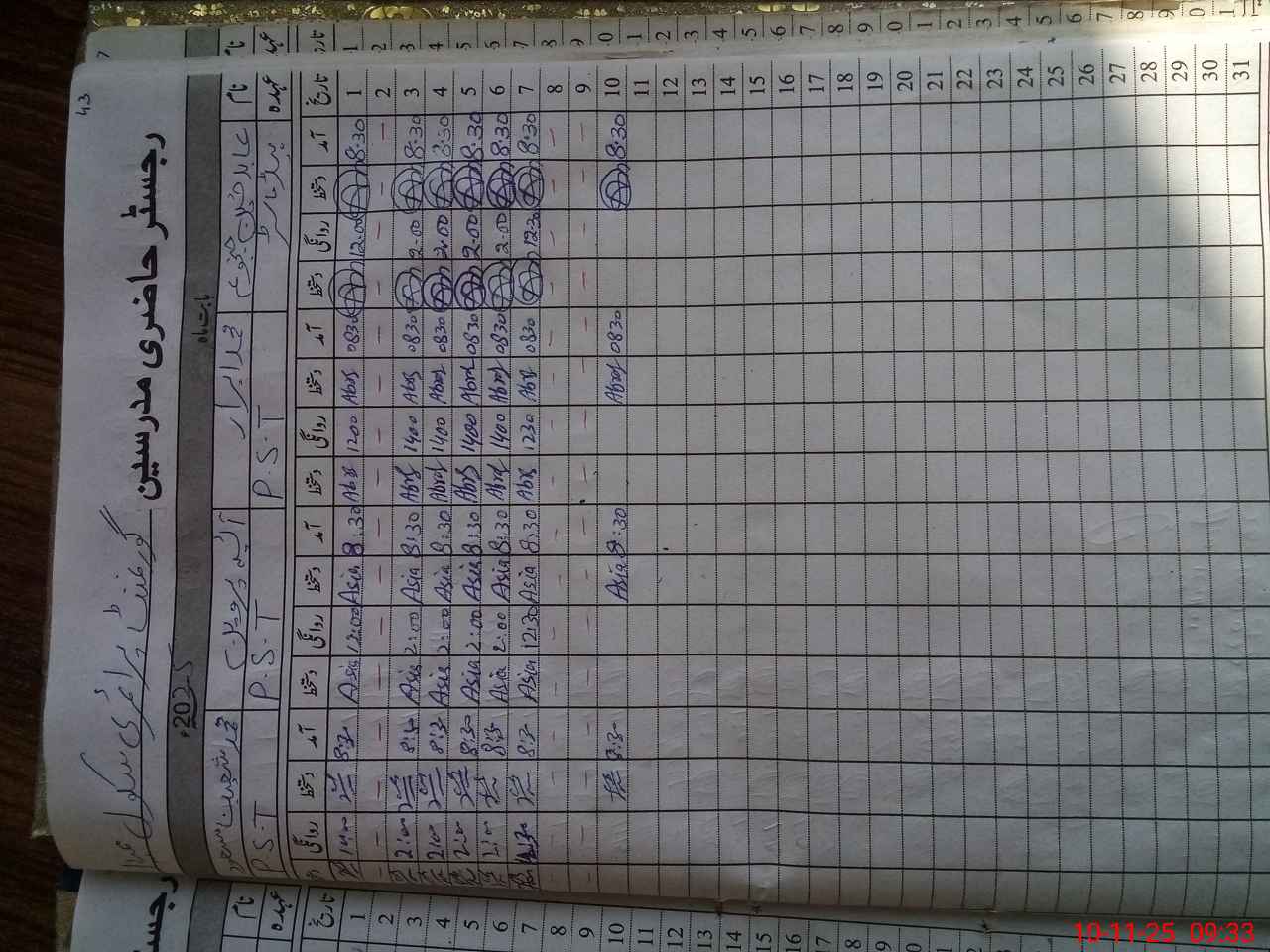 | Name: AB**** HU**** Designation: (School Headmaster's/Headmistress's) PST Phone/Cell Number: 03**** |