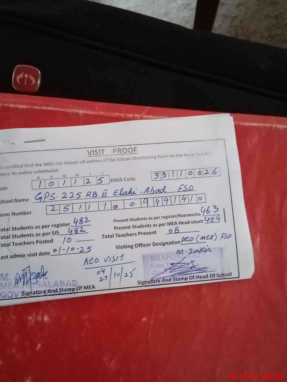 | EMIS Code: 33110026 | Name of School: GPS CHAK 225 RB II ELAHI ABAD FSD | |||