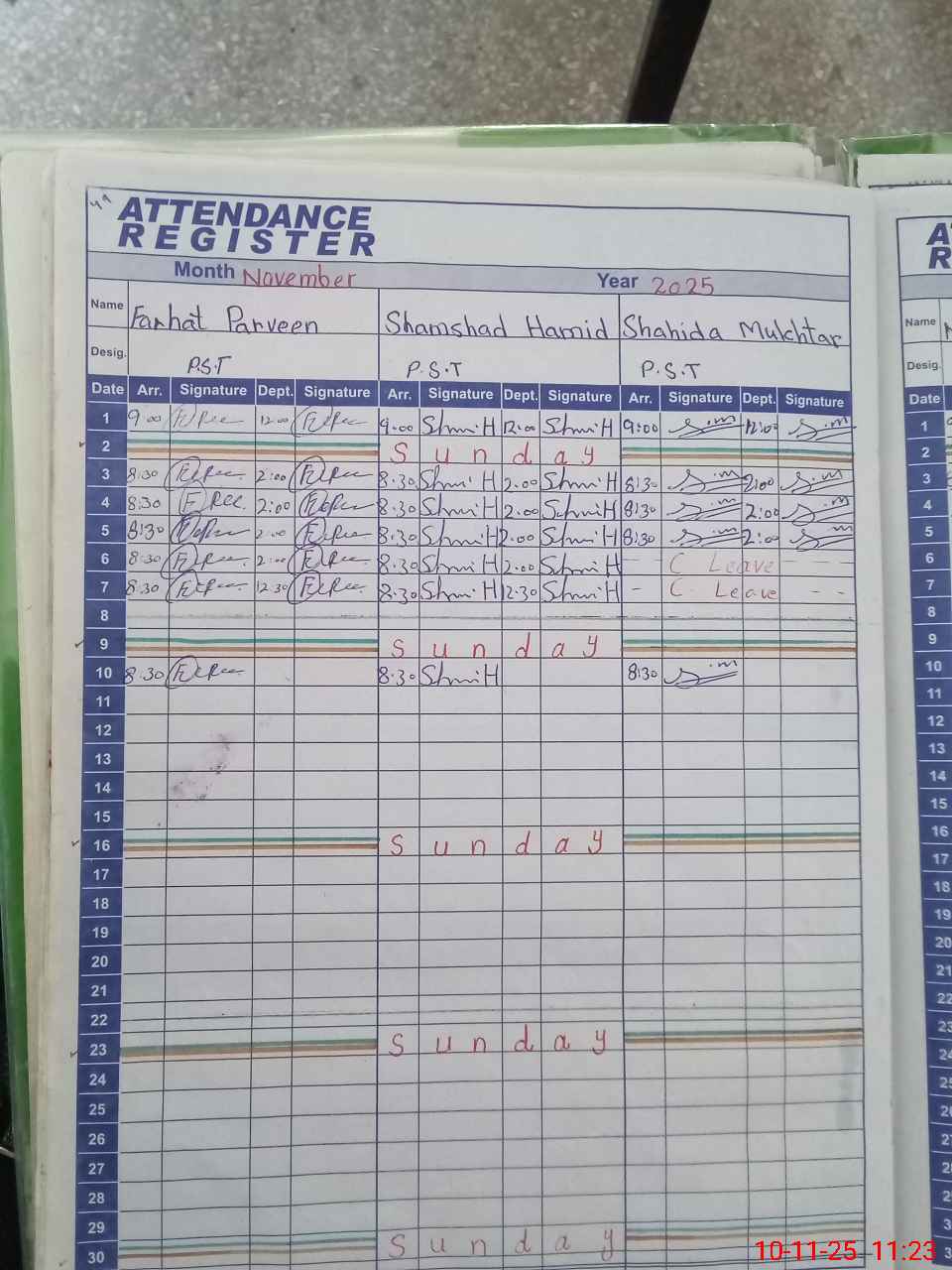 | CNIC | Full Name | Designation | R/C | Absence During Last Calender Month |