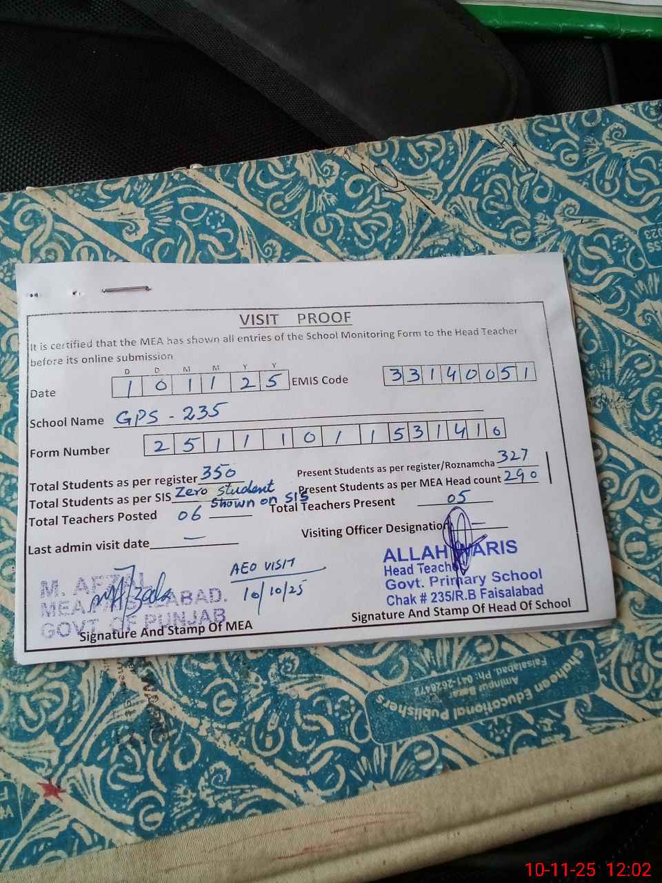 | EMIS Code: 33140051 | Name of School: GPS 235 RB | |||