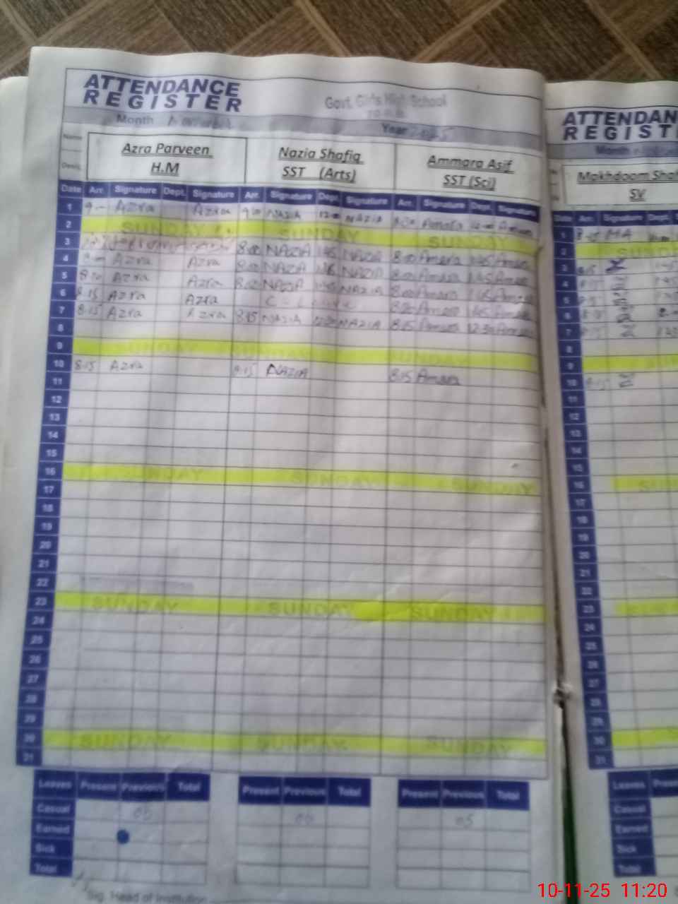 | Name: NA**** SH**** Designation: (School Headmaster's/Headmistress's) SST(GENERAL) Phone/Cell Number: 03**** |