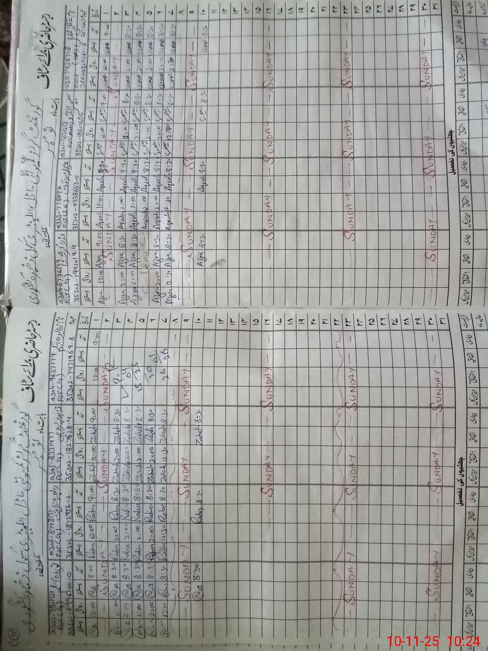 | CNIC | Full Name | Designation | R/C | Absence During Last Calender Month |