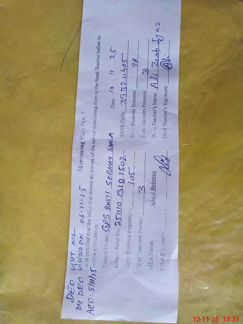 | Remarks (Use Separate Page if Required): There is no visit of DEO Dy DEO visited on 6 November 2025 AEO Visited on 06 November 2025 | |||||