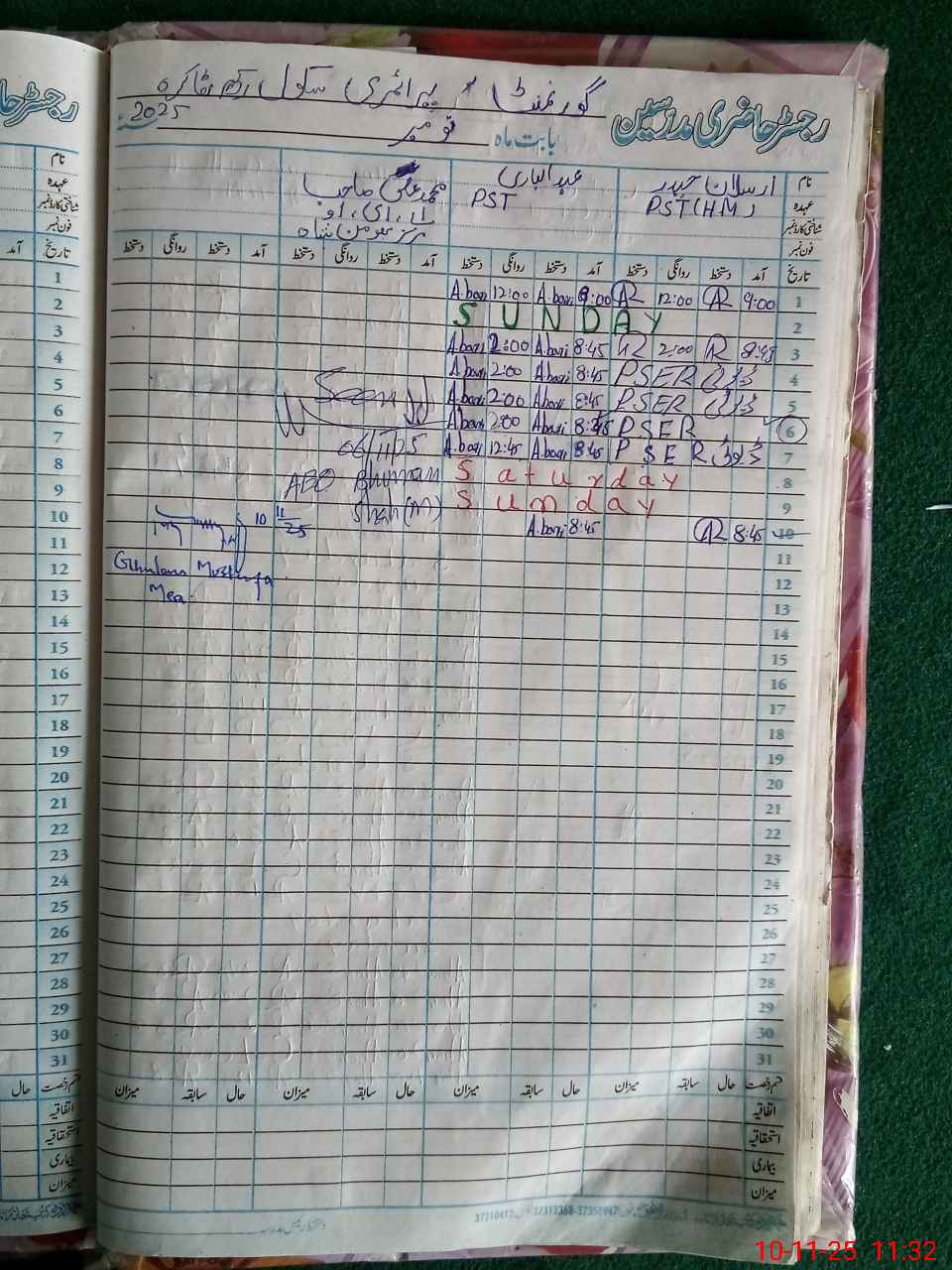 | CNIC | Full Name | Designation | R/C | Absence During Last Calender Month |