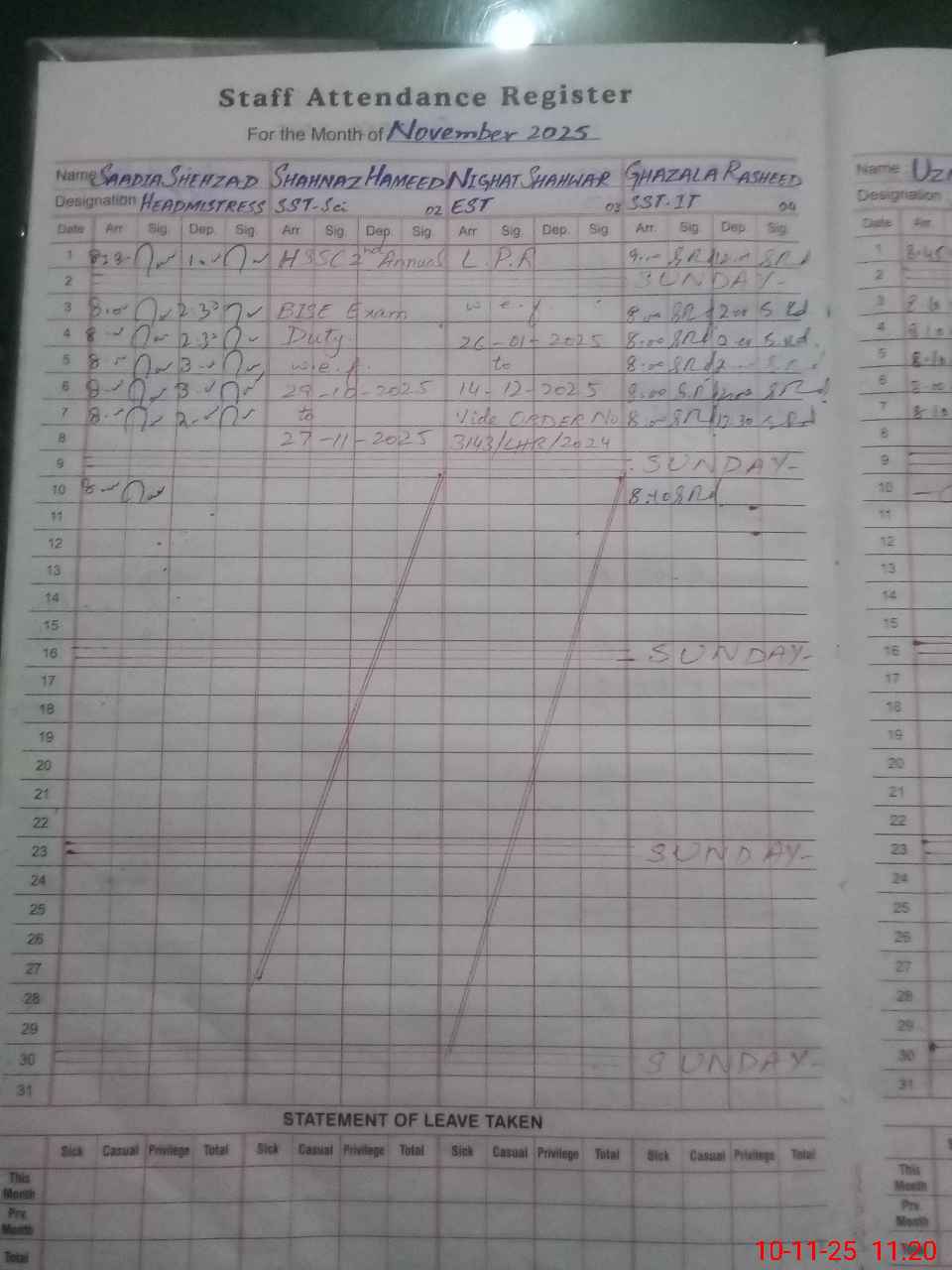 | 35**** | Sh**** Ha**** | Regular | 1 | 4 | 0 | 0 | 0 | 0 | 0 | 0 | 1 | Exam Duty | |
