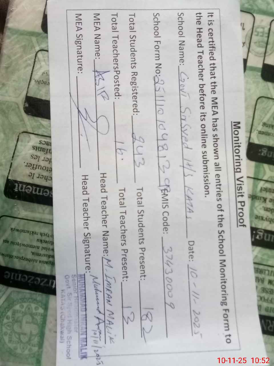 | EMIS Code: 37430009 | Name of School: GHS SIR SYED KATAS | |||