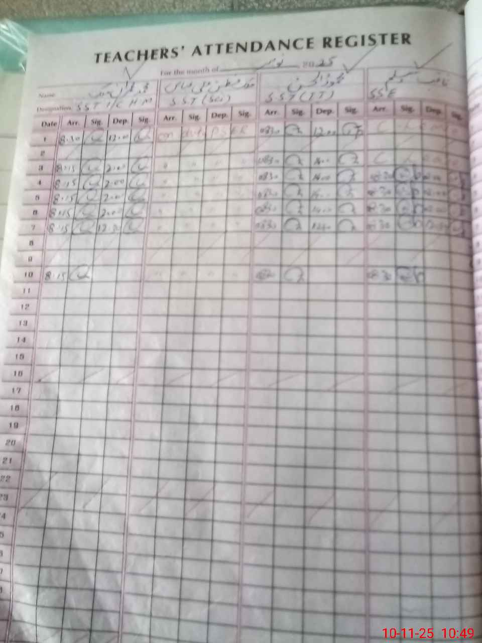 | CNIC | Full Name | Designation | R/C | Absence During Last Calender Month |