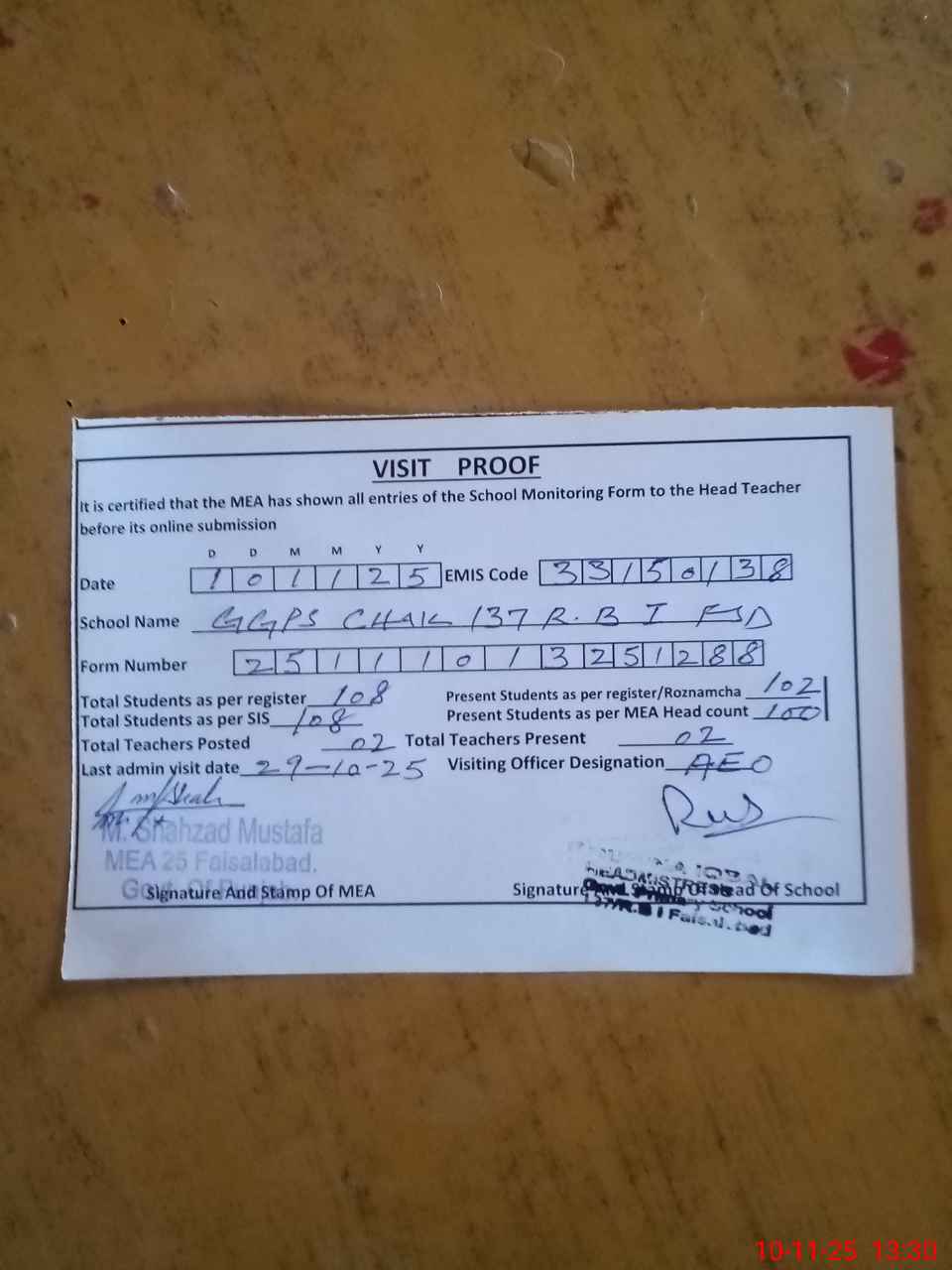 | EMIS Code: 33150138 | Name of School: GGPS CHAK 137 RB 1 | |||