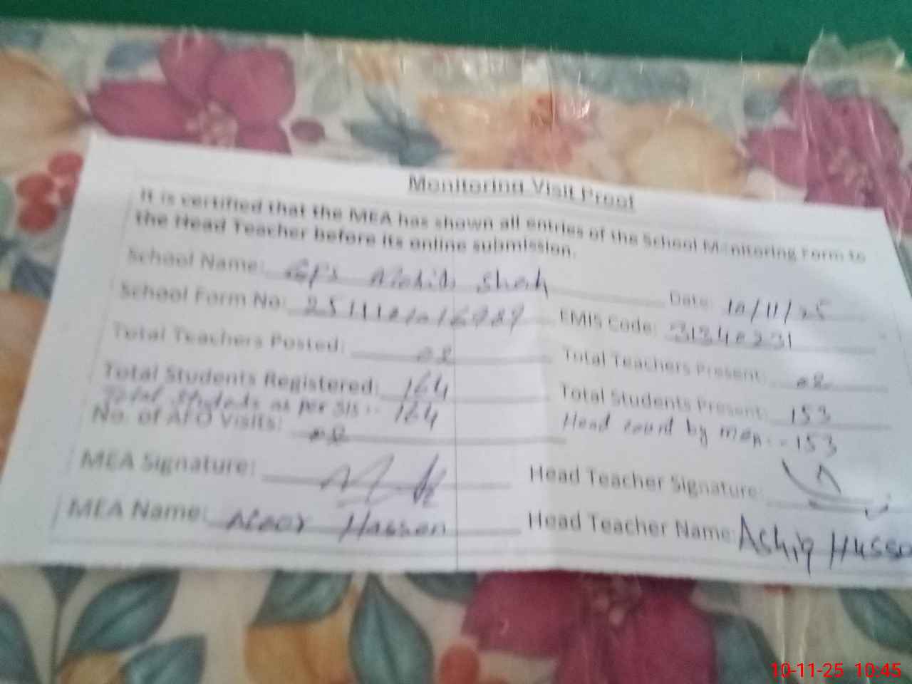 | EMIS Code: 31340231 | Name of School: GPS MOHIB SHAH | |||