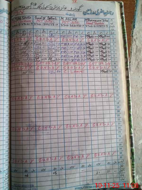 | Name: MU**** RA**** TA**** Designation: (School Headmaster's/Headmistress's) PST/PTC/JV Phone/Cell Number: 03**** |