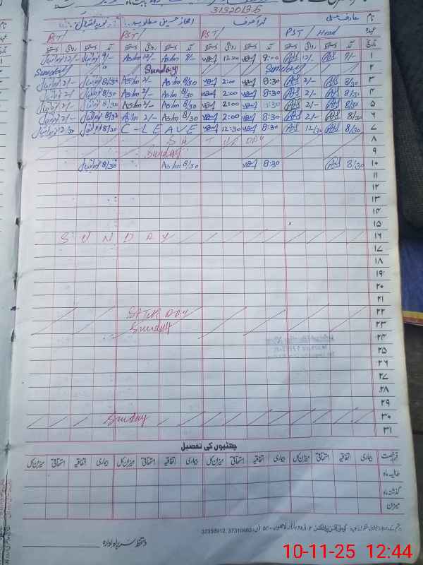 | CNIC | Full Name | Designation | R/C | Absence During Last Calender Month |