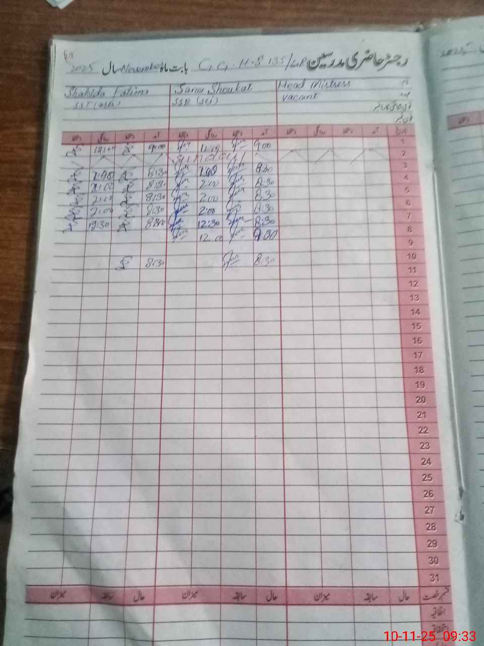 | CNIC | Full Name | Designation | R/C | Absence During Last Calender Month |