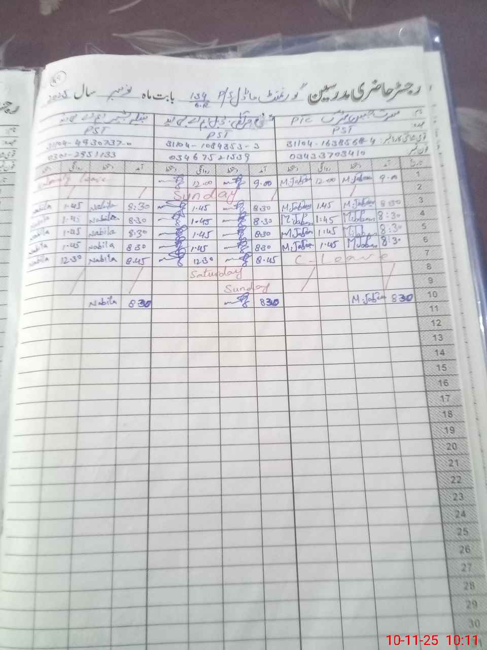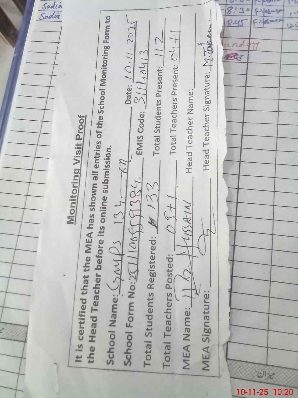 | Name: Na**** Sh**** Designation: (School Headmaster's/Headmistress's) PST Phone/Cell Number: 03**** |