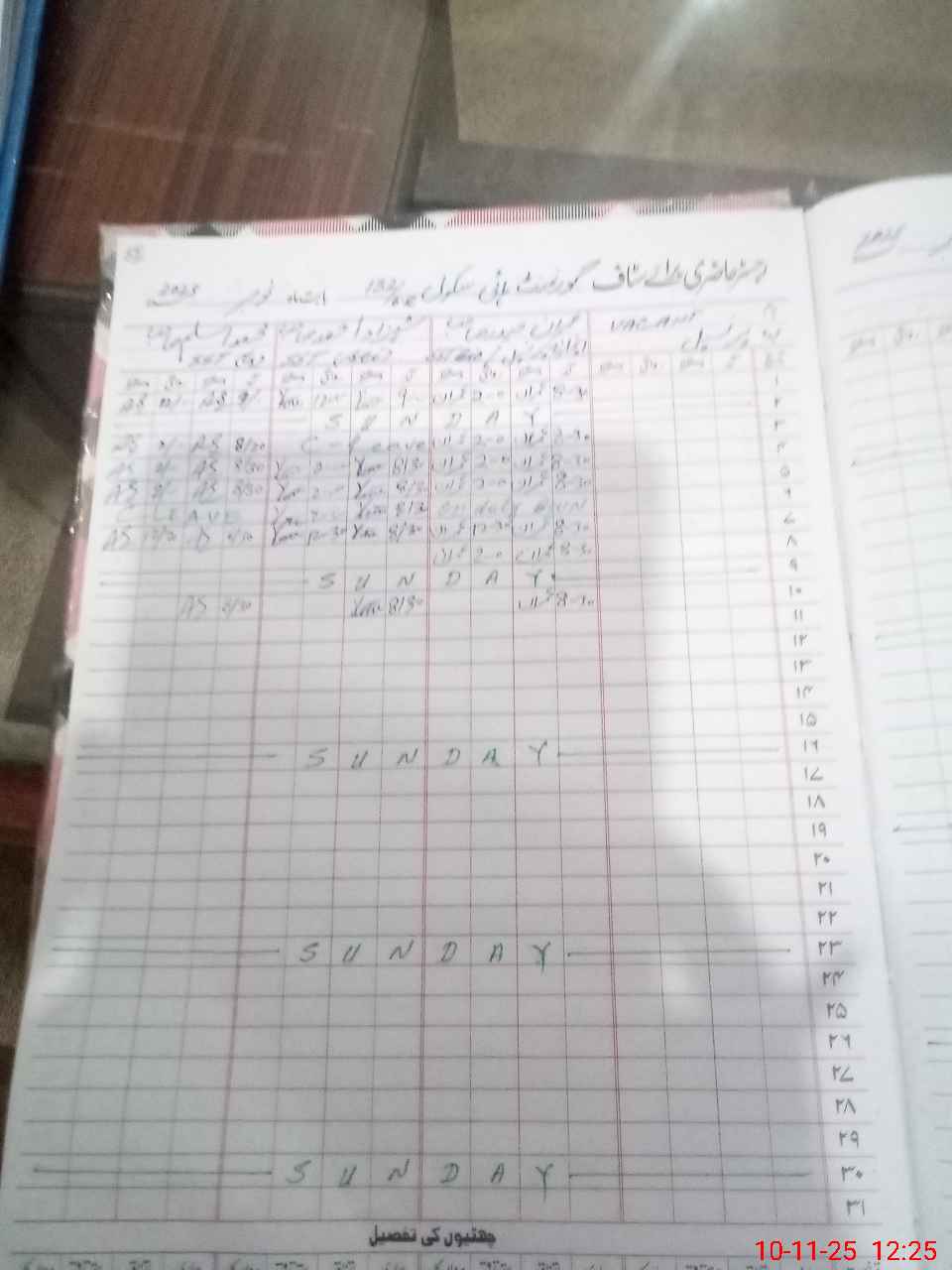 | CNIC | Full Name | Designation | R/C | Absence During Last Calender Month |