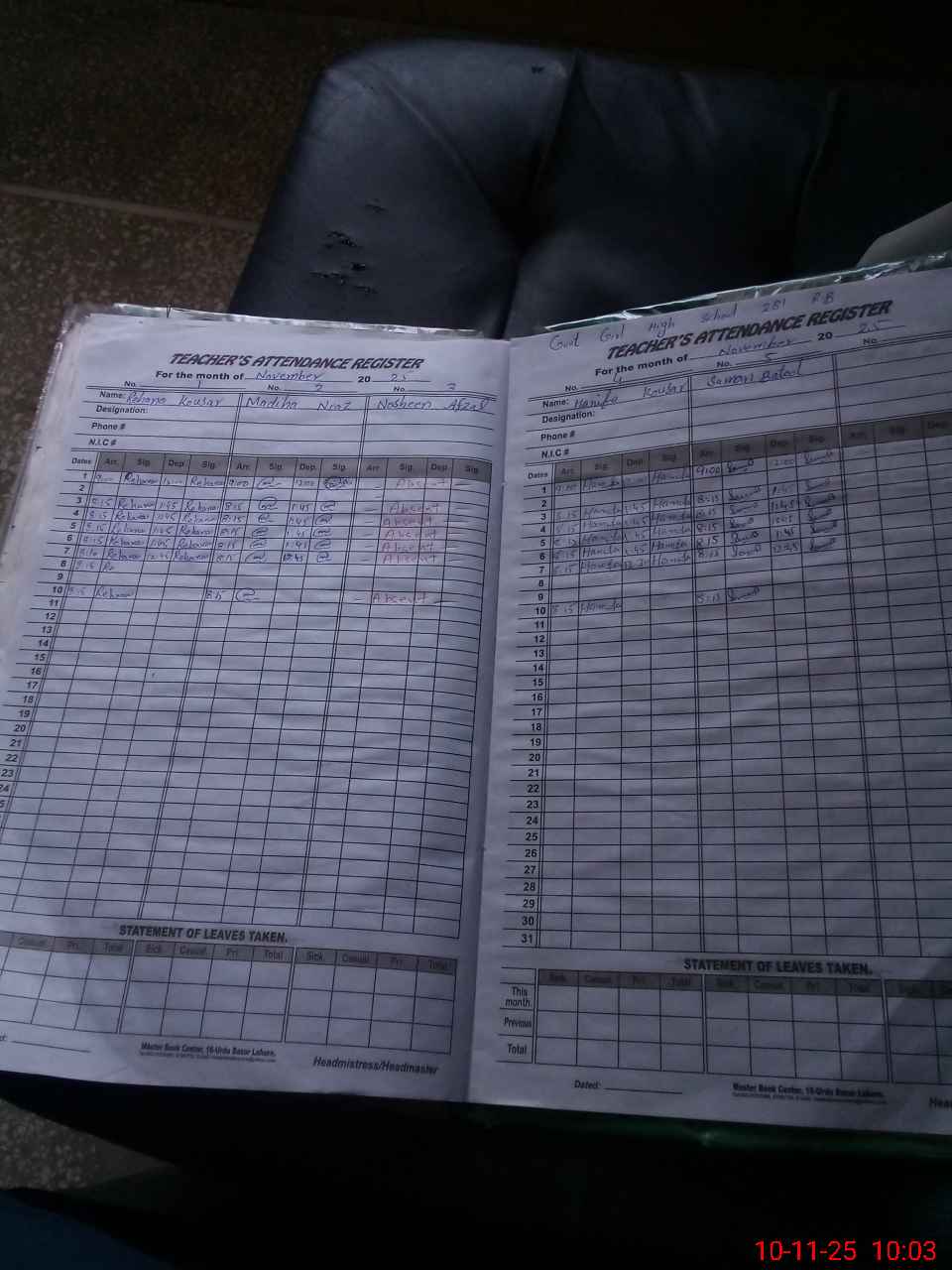 | Remarks (Use Separate Page if Required): 03 STIs posted and present on duty EST Nosheen Afzal absent from duty wef 27 February 2025 NSB record not maintained fresh bank statement not available FTF record not maintained properly | |||||