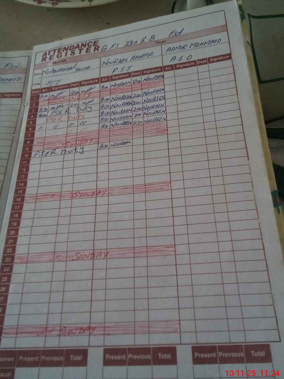 | CNIC | Full Name | Designation | R/C | Absence During Last Calender Month |
