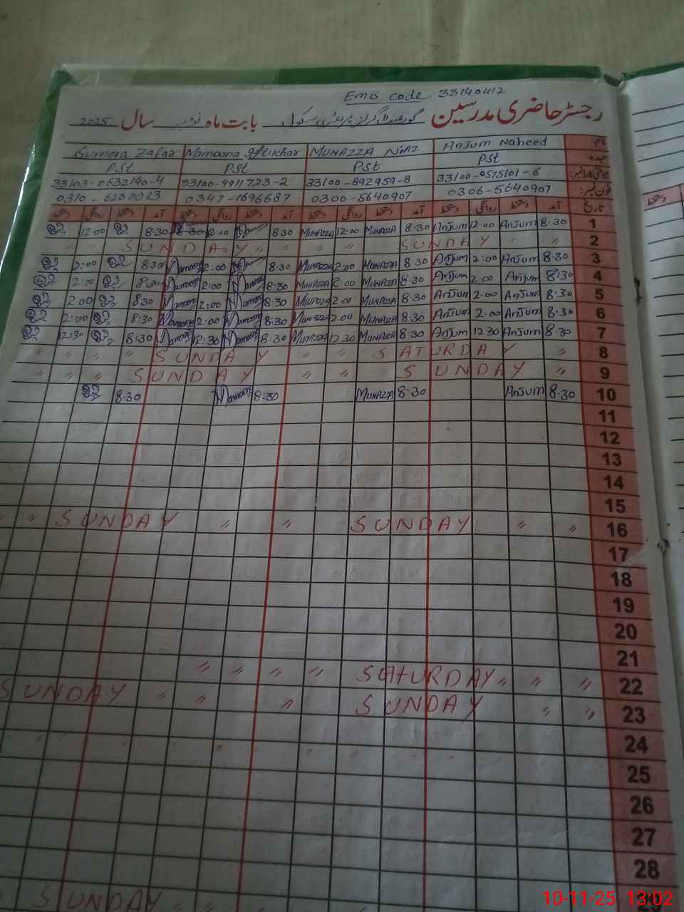 | Name: Mu**** Ni**** Designation: (School Headmaster's/Headmistress's) PST Phone/Cell Number: 03**** |