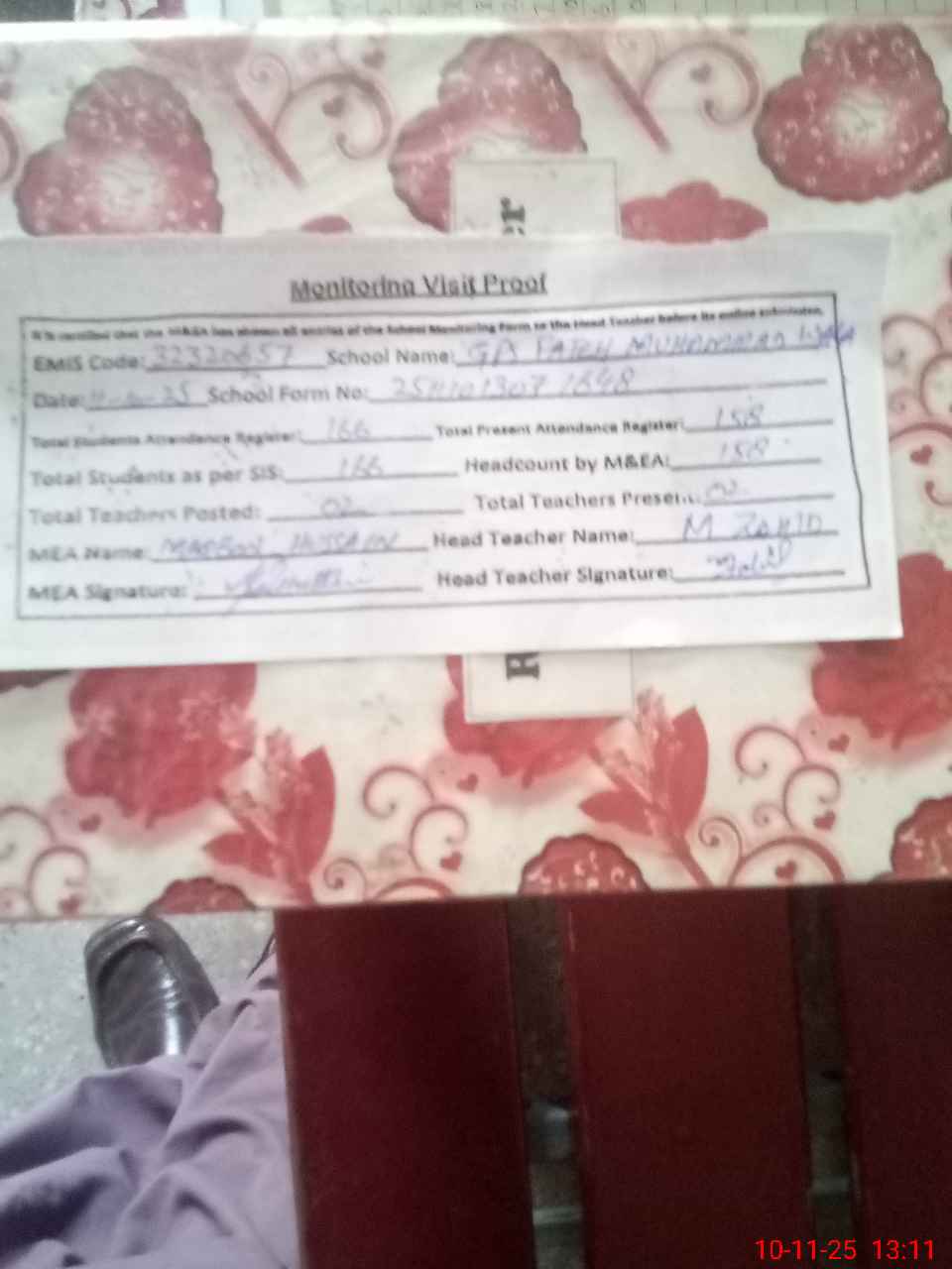 | EMIS Code: 32320657 | Name of School: GPS FATEH MUHAMMAD WALA | |||