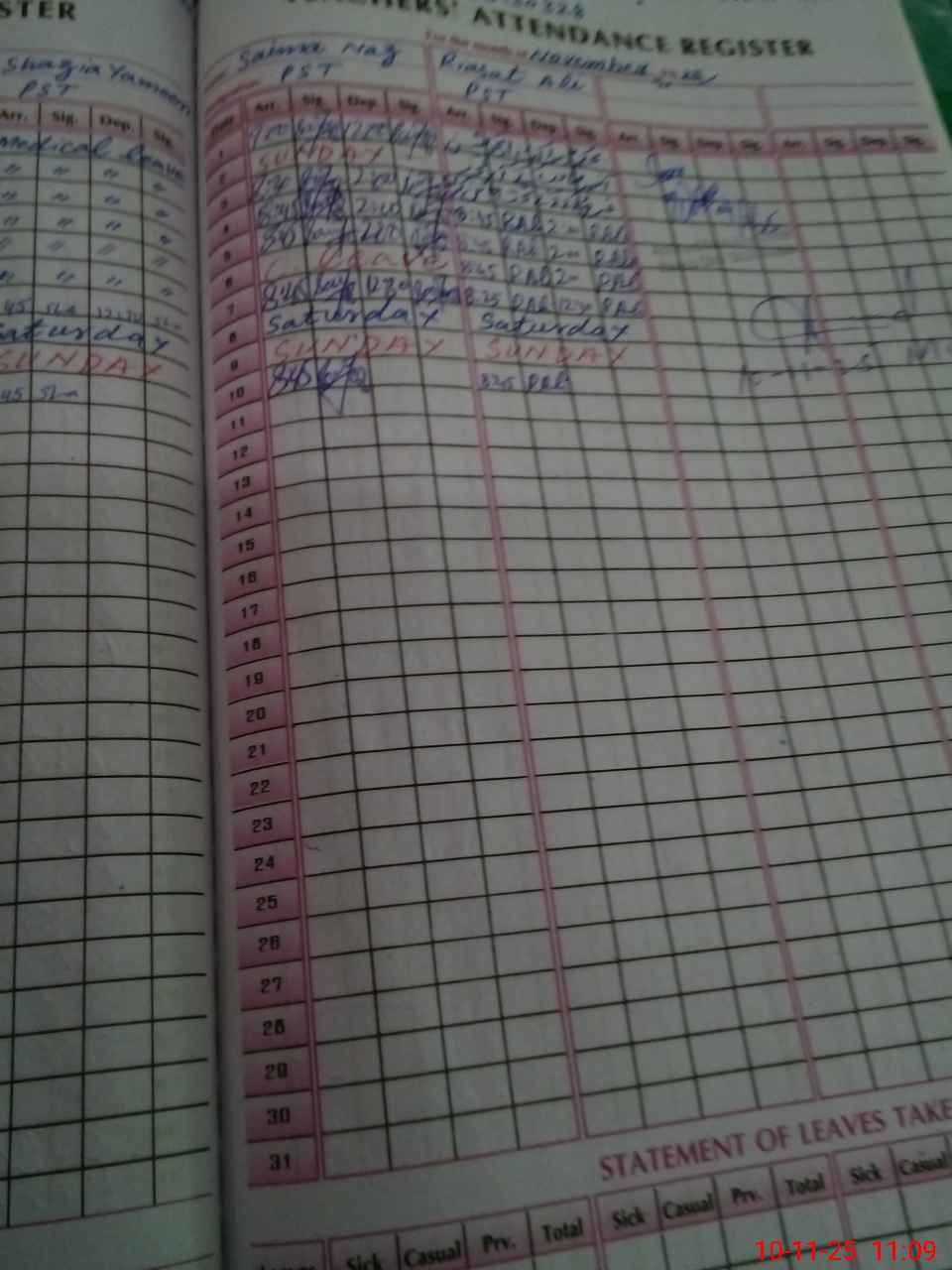 | CNIC | Full Name | Designation | R/C | Absence During Last Calender Month |
