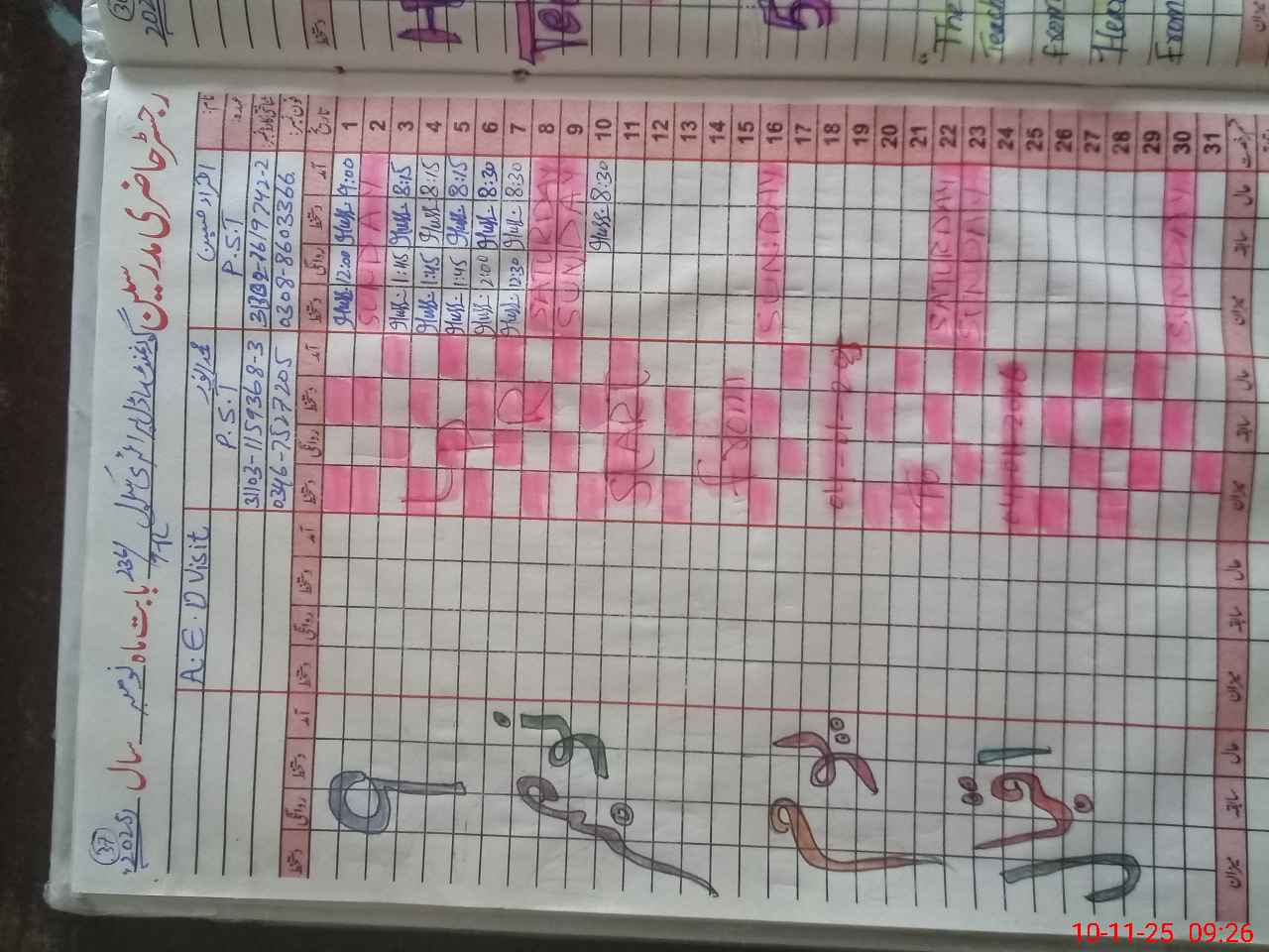 | CNIC | Full Name | Designation | R/C | Absence During Last Calender Month |