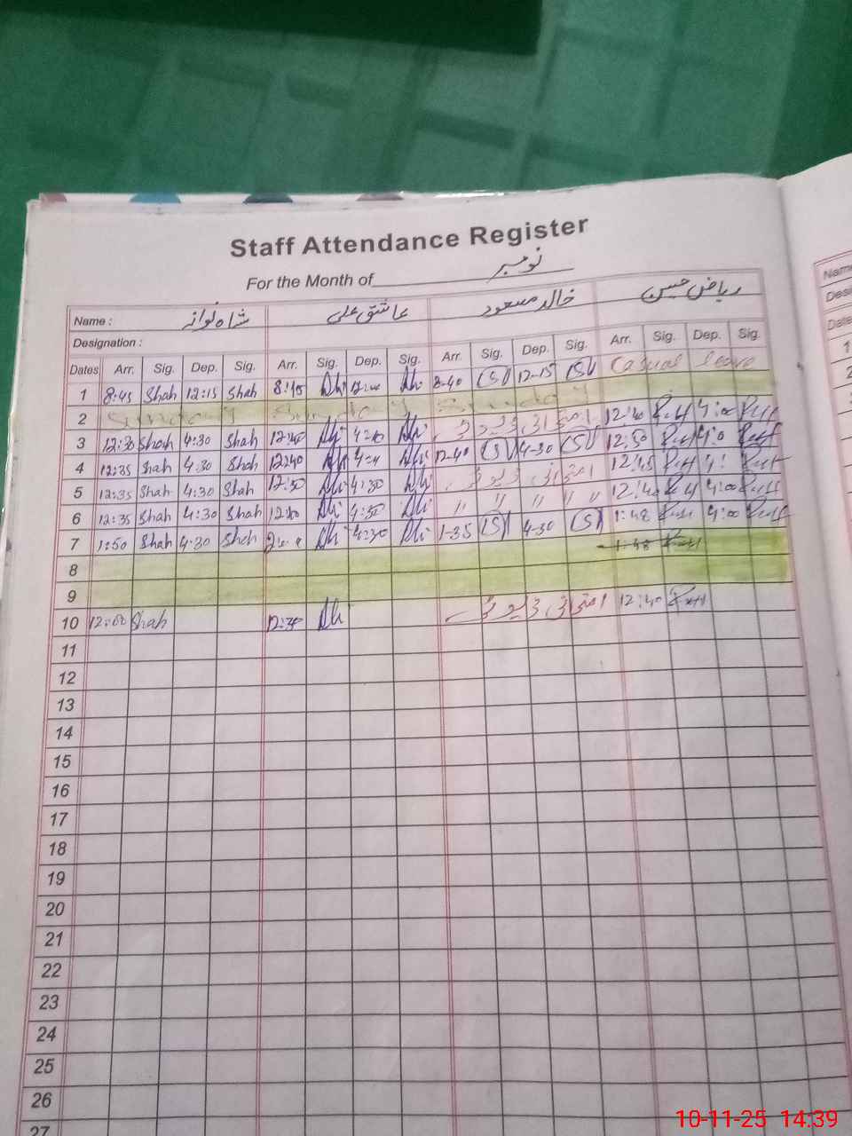 | CNIC | Full Name | Designation | R/C | Absence During Last Calender Month |