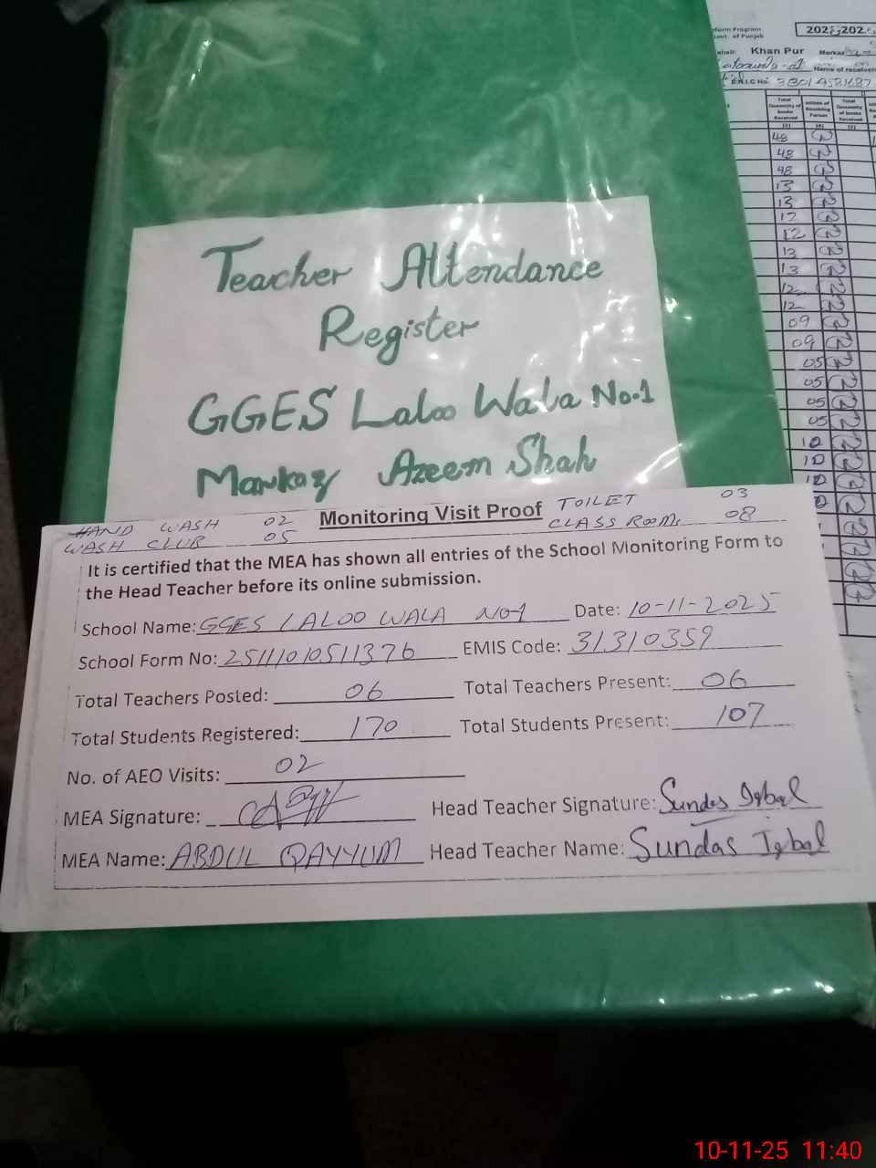 | EMIS Code: 31310359 | Name of School: GGES LALOO WALA NO. 1 | |||