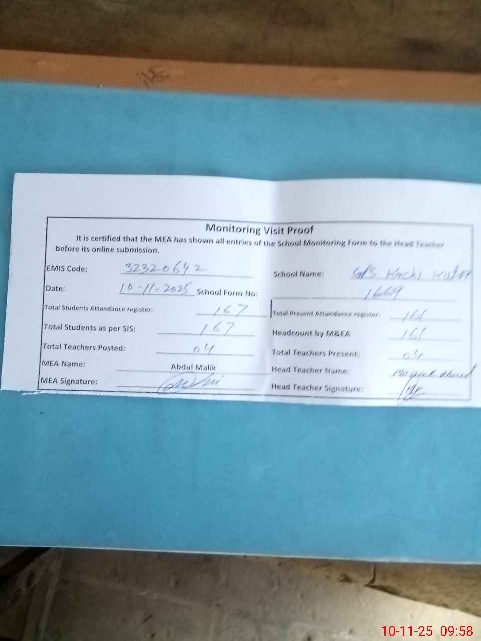 | EMIS Code: 32320642 | Name of School: GPS KACHI KUTRA | |||