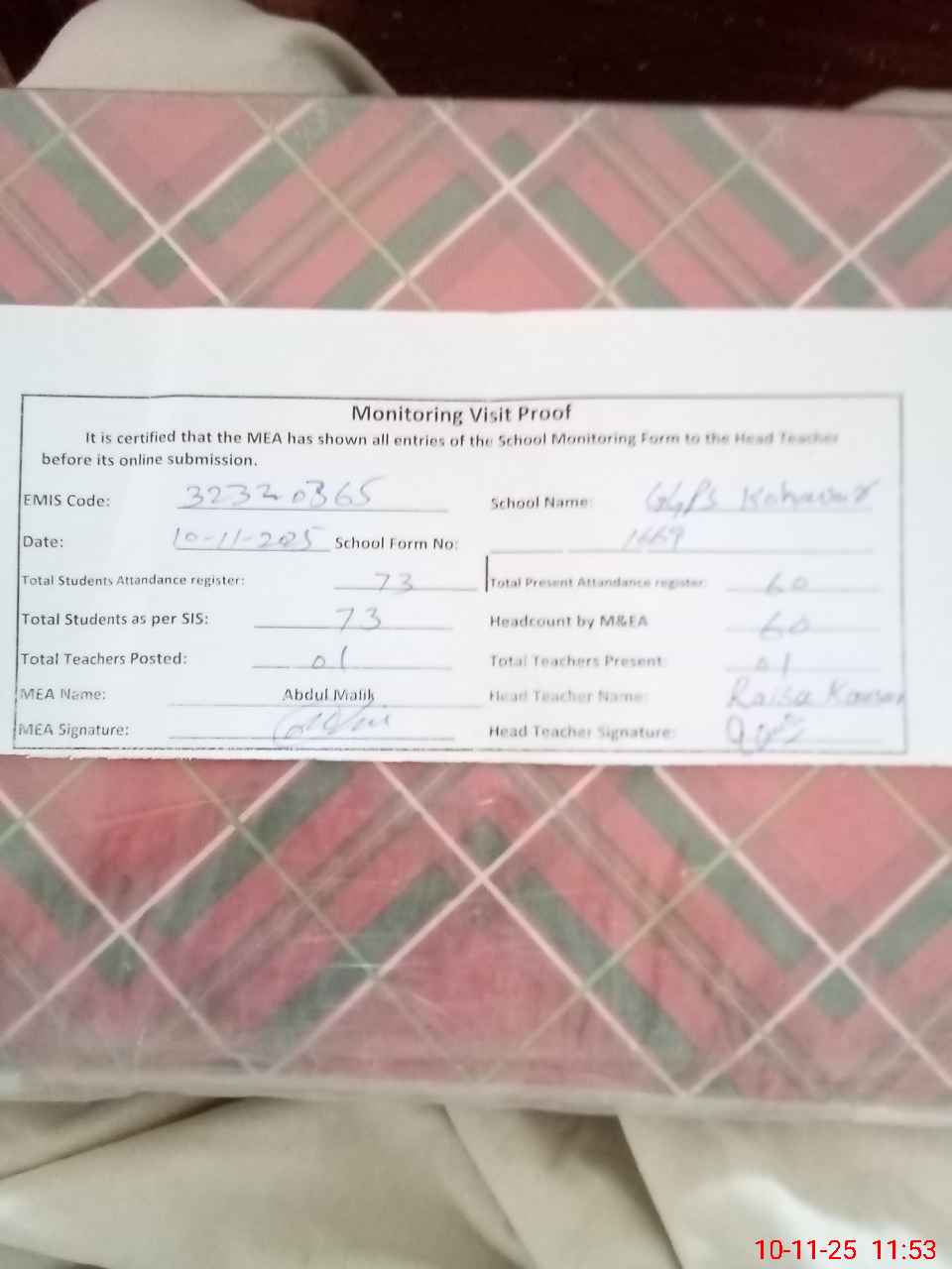 | EMIS Code: 32320365 | Name of School: GGPS KOHAWAR | |||