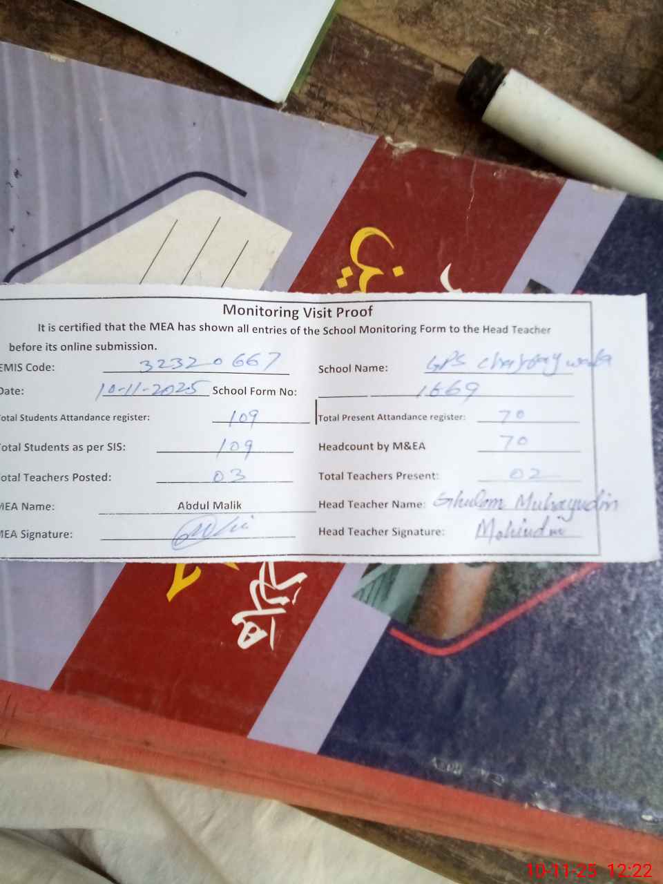 | EMIS Code: 32320667 | Name of School: GPS CHAJRAY WALA | |||