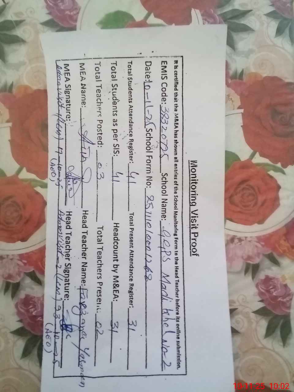 | EMIS Code: 38320725 | Name of School: GGPS MADI KHEL NO. 2 | |||