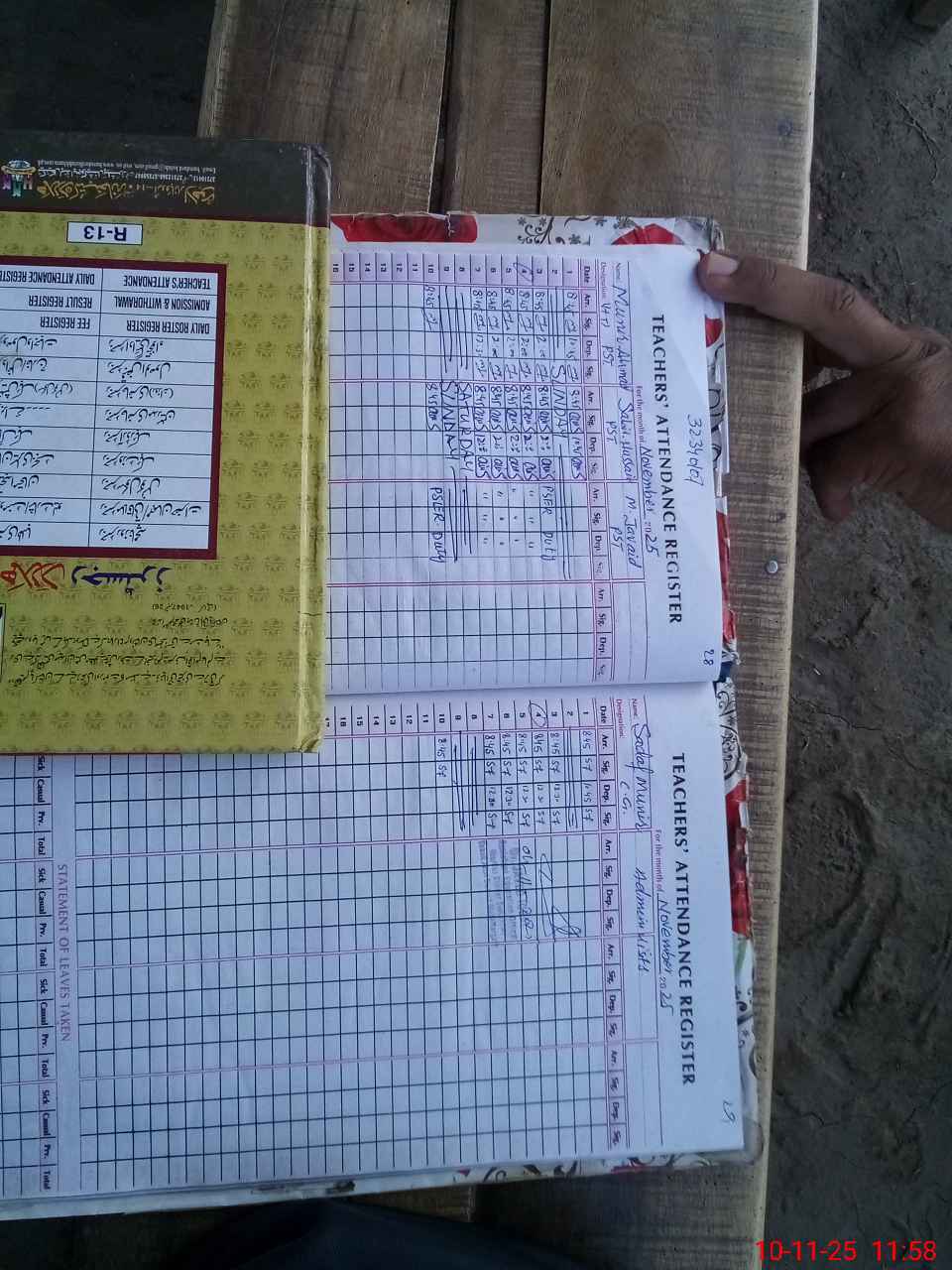 | CNIC | Full Name | Designation | R/C | Absence During Last Calender Month |