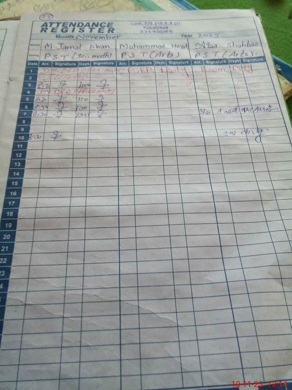 | Name: M.Ja**** Kh**** Designation: (School Headmaster's/Headmistress's) PST Phone/Cell Number: 03**** |