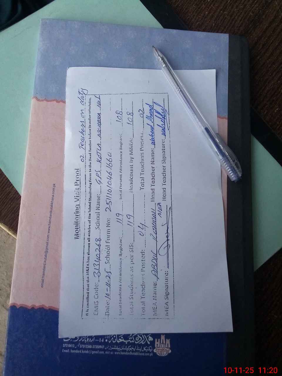 | Attendance Register | Head Teacher | MEA with School | Visit Proof |