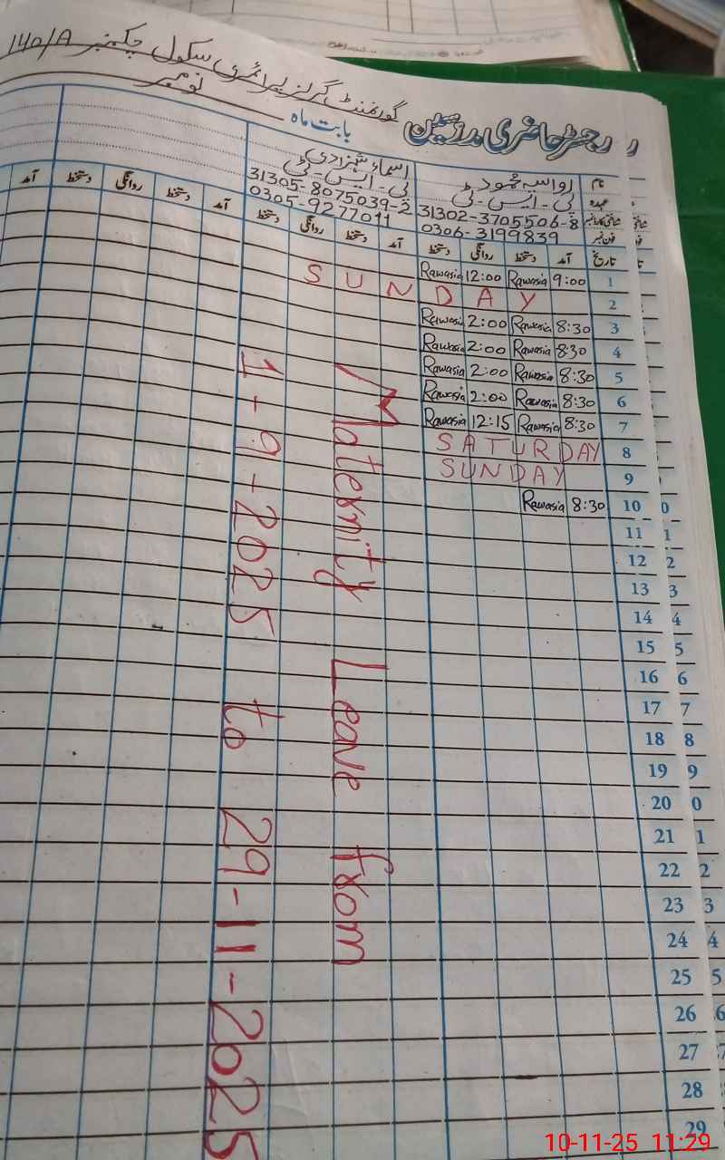 | Name: RA**** MA**** Designation: (School Headmaster's/Headmistress's) PST Phone/Cell Number: 03**** |