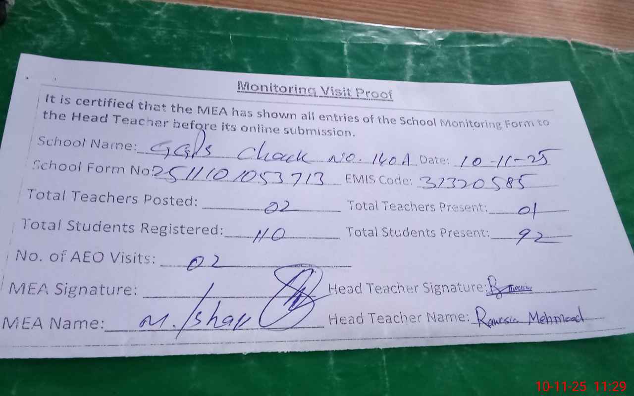 | EMIS Code: 31320585 | Name of School: GGPS CHAK NO.140/A | |||