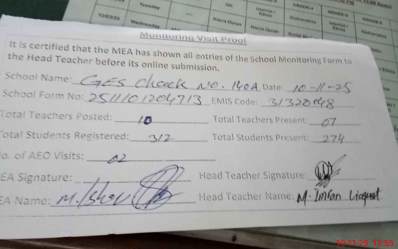 | EMIS Code: 31320048 | Name of School: GES CHAK NO.140-A | |||