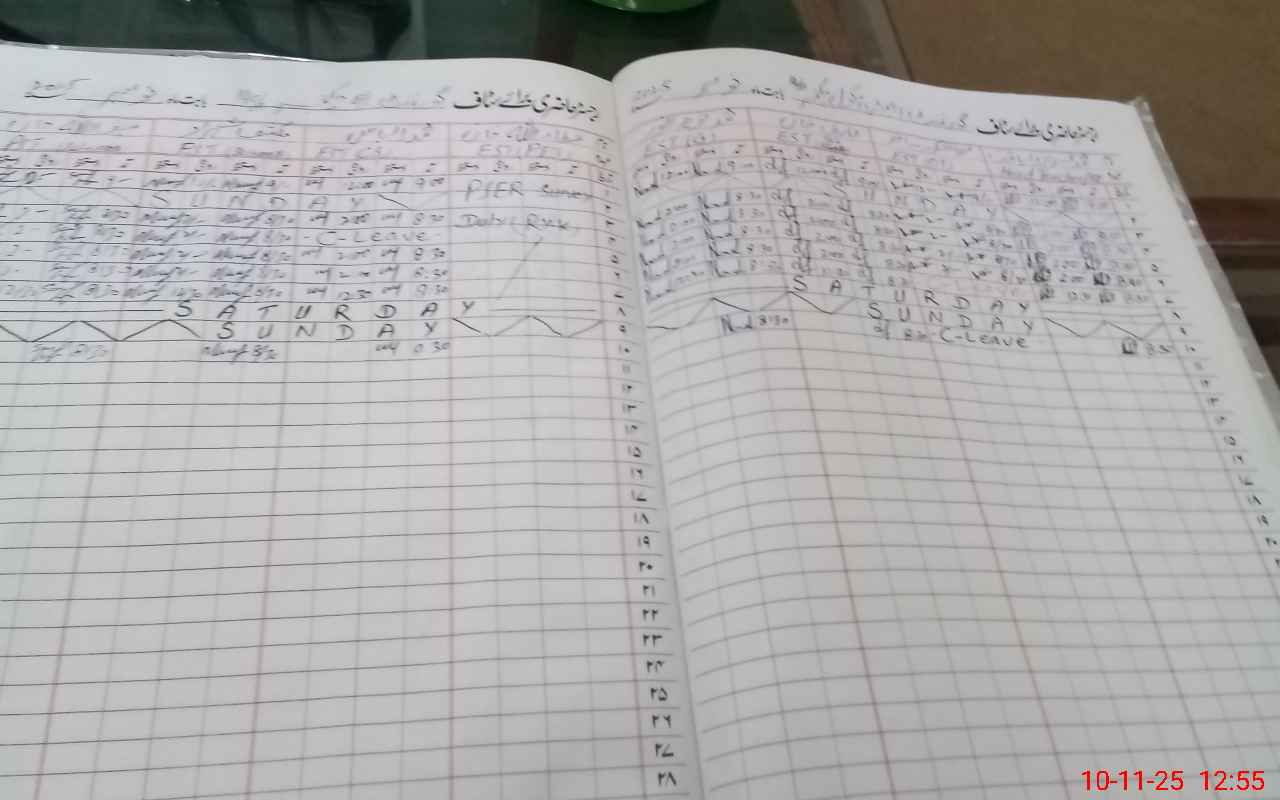 | CNIC | Full Name | Designation | R/C | Absence During Last Calender Month |
