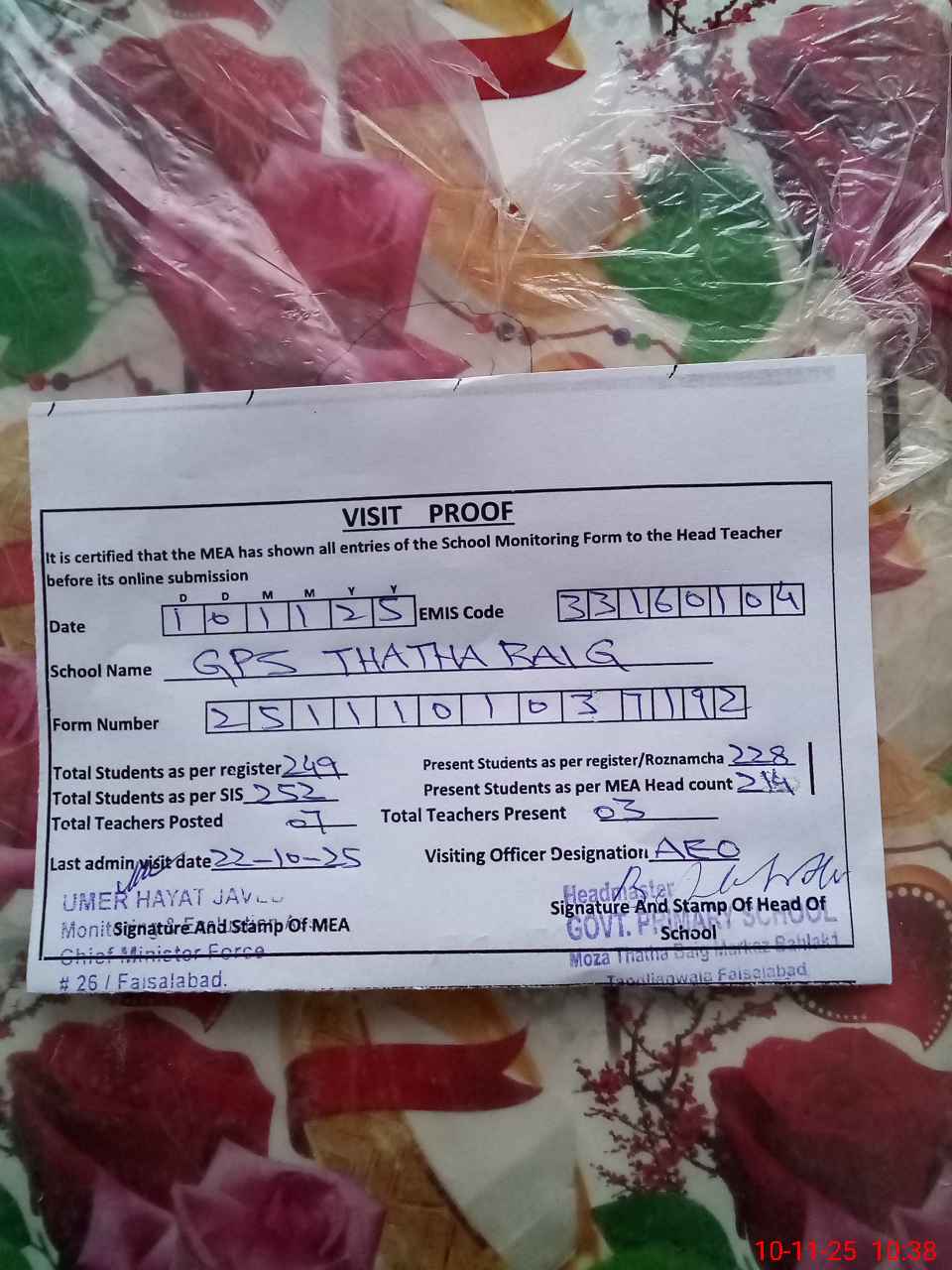 | EMIS Code: 33160104 | Name of School: GPS THATHA BAIG | |||