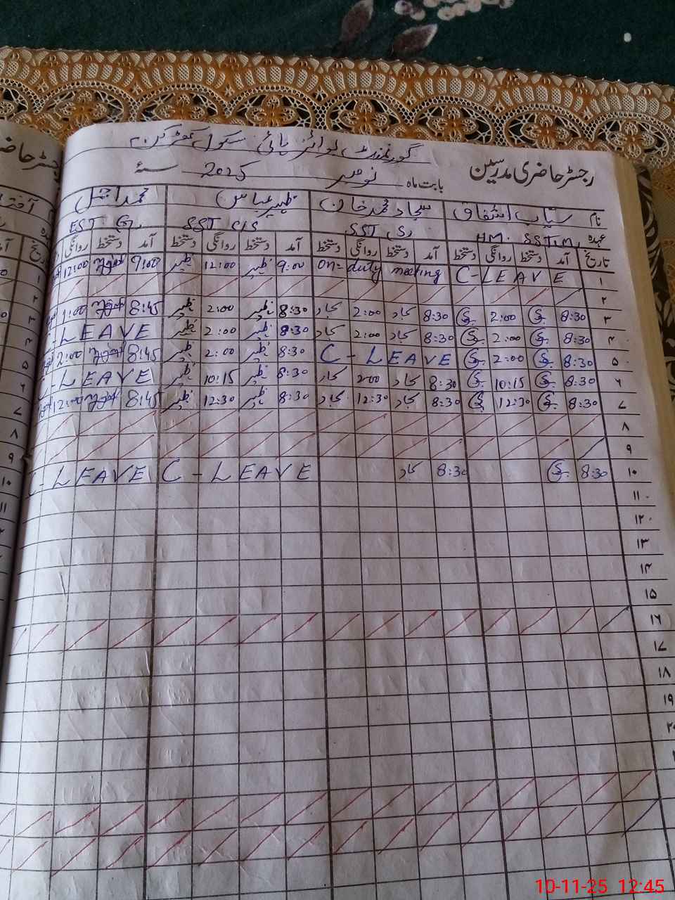 | Leave | Duty | Absent | Maternity | Medical | Ex- Pak |