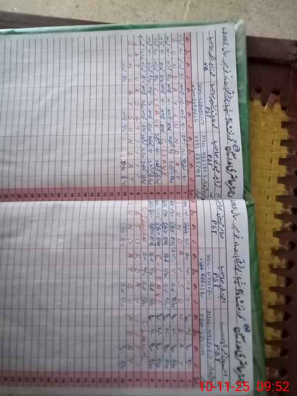 | CNIC | Full Name | Designation | R/C | Absence During Last Calender Month |