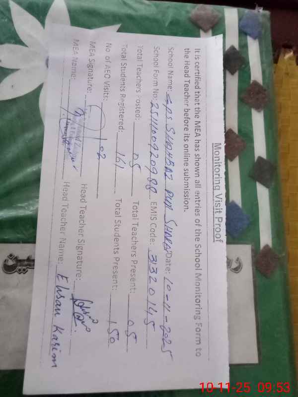 | EMIS Code: 31320145 | Name of School: GPS SHAHBAZ PUR SHARQI | |||
