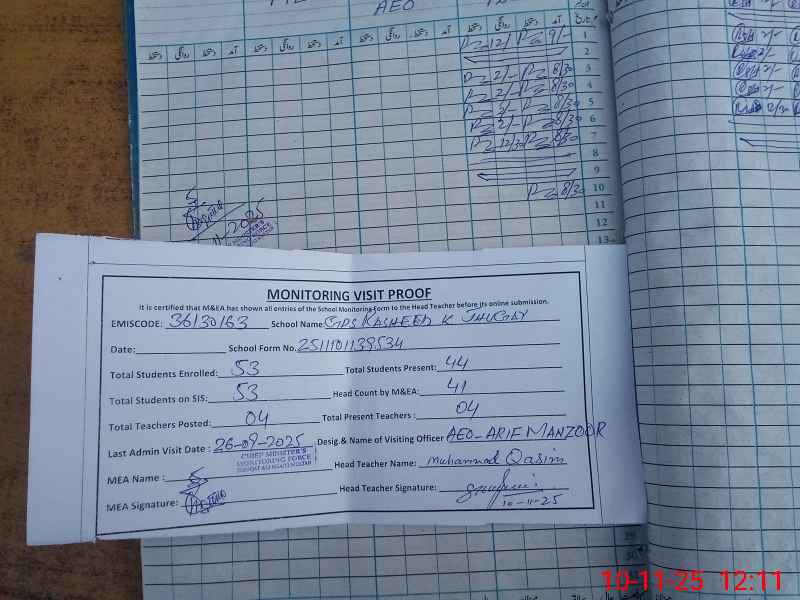 | EMIS Code: 36130163 | Name of School: GPS RASHEED-K-JHUGEY | |||