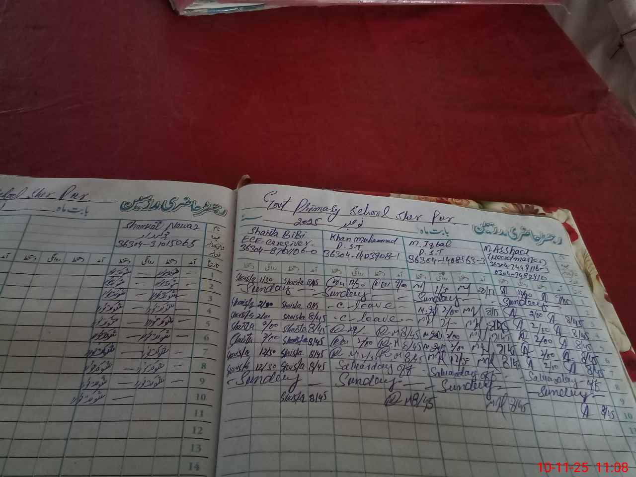 | Name: Mu**** Ar**** Designation: (School Headmaster's/Headmistress's) HEADMASTER Phone/Cell Number: 03**** |