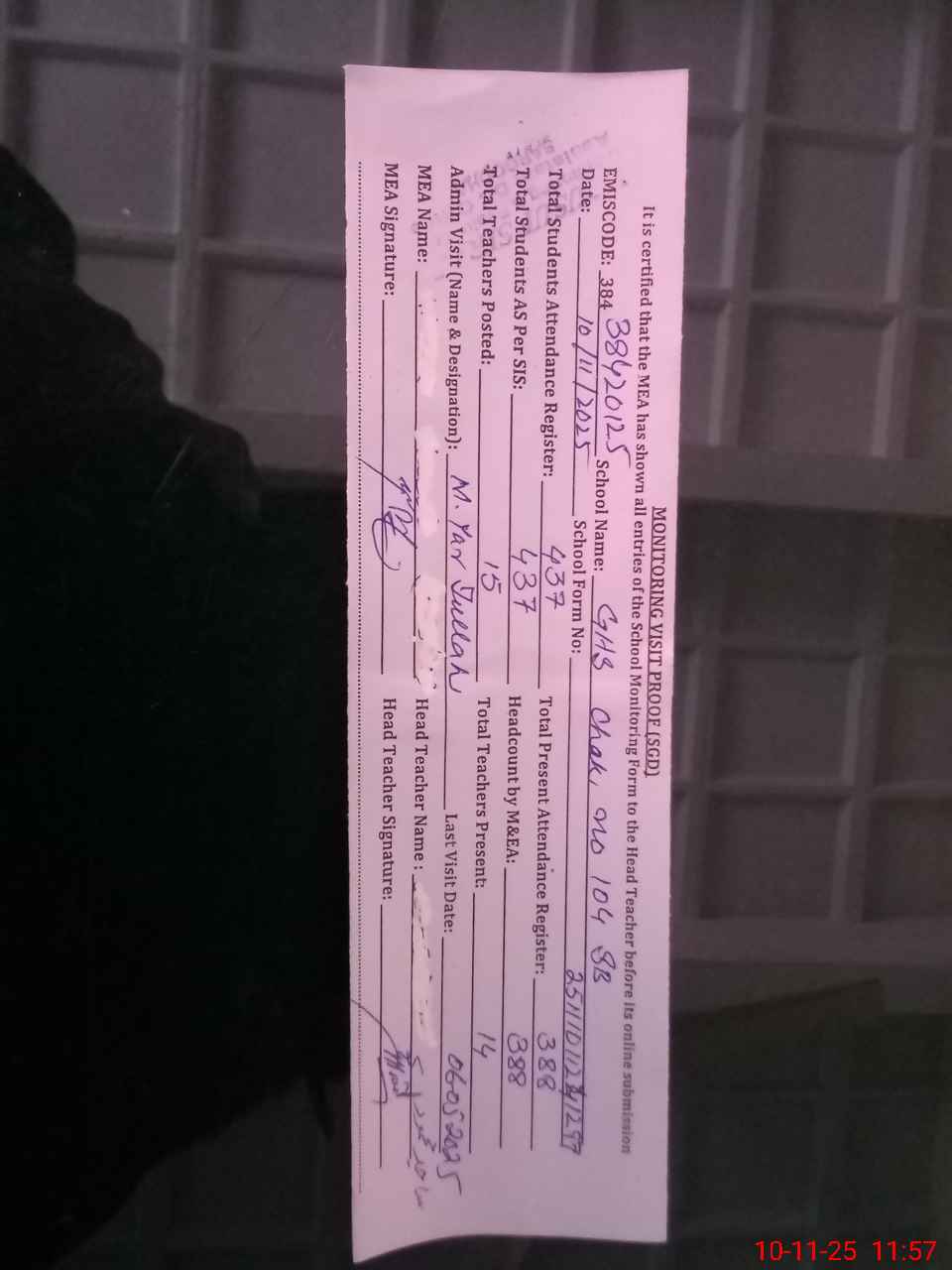 | Certified that this School was Inspected by the Undersigned MEA/DMO Today and the Information Stated Above is as Per Record. | |||||