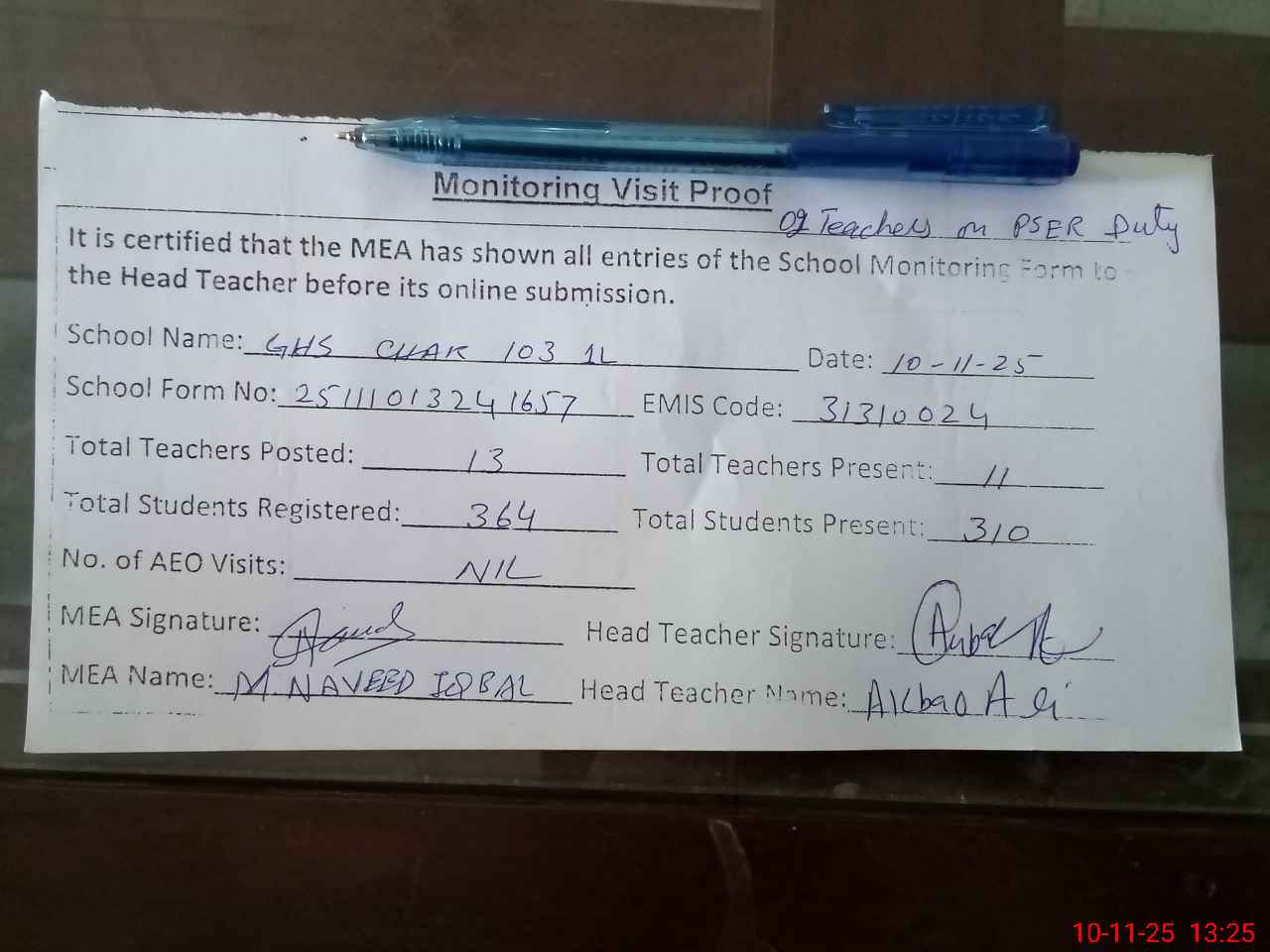 | EMIS Code: 31310024 | Name of School: GHS CHAK 103/1-L | |||