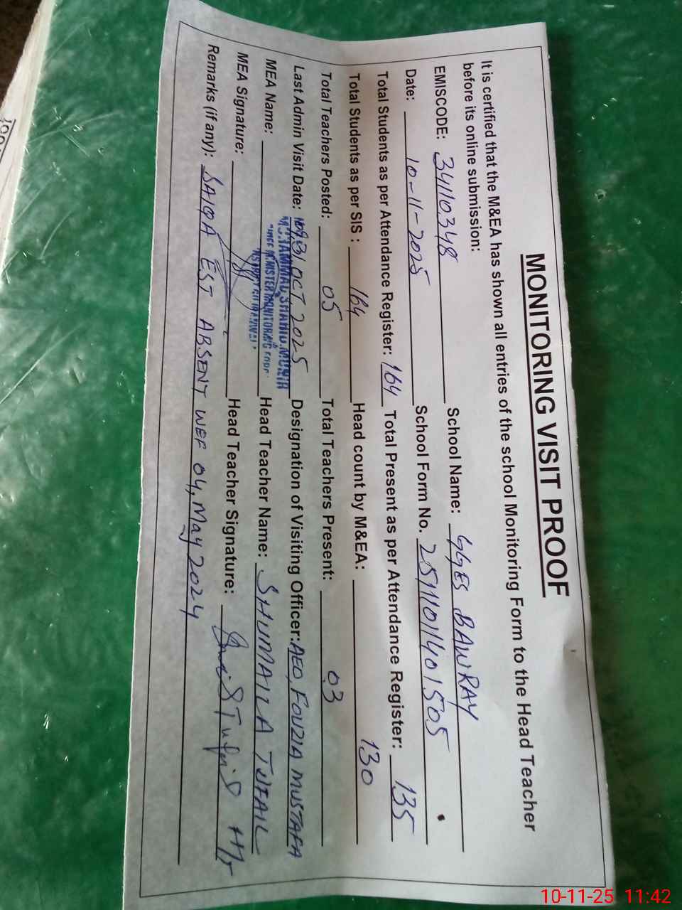 | EMIS Code: 34110348 | Name of School: GGES BAWRAY | |||