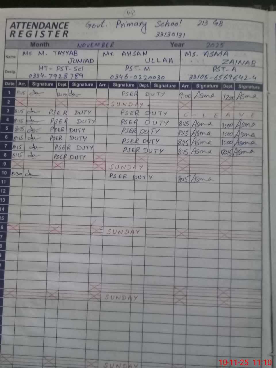 | Name: MTA**** JU**** Designation: (School Headmaster's/Headmistress's) PST Phone/Cell Number: 03**** |