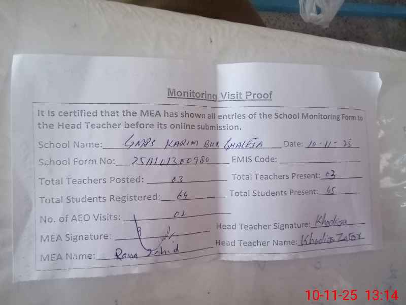 | EMIS Code: 31310491 | Name of School: GMPS KARIM BUX GHALEJA | |||